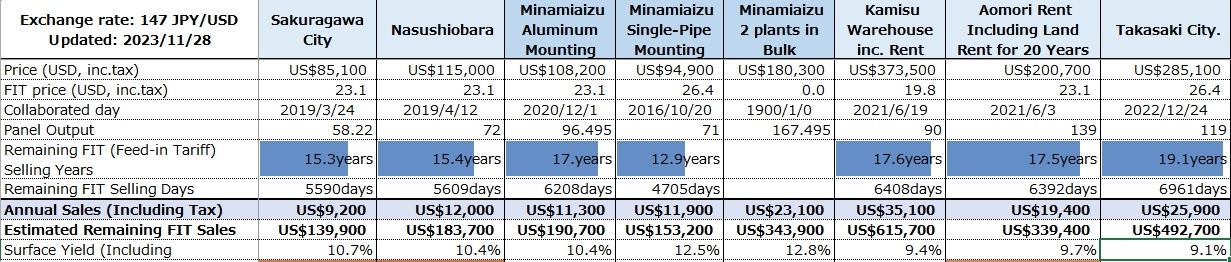 - The items for sale are the FIT rights, the power plant itself, and the land ownership (the power plant in Aomori is a leasehold).